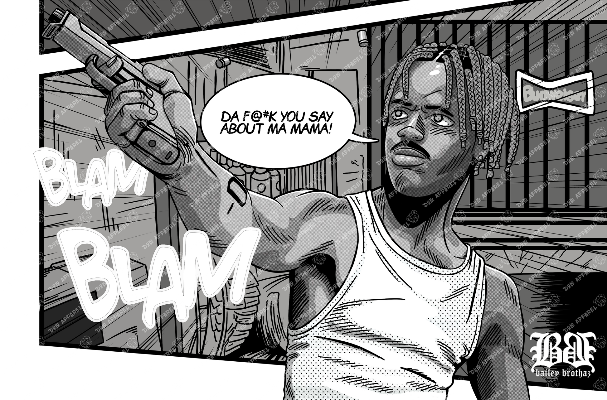 Capture one of the most unforgettable moments in hood cinema with the O-Dog Tee. This bold t-shirt pays homage to Menace II Society, featuring a striking image of O-Dog in the legendary convenience store scene — a raw, intense moment that defined his character and cemented his place as one of film’s most iconic anti-heroes. A perfect mix of nostalgia and streetwear style, this tee is a must-have for fans of classic ’90s movies and urban culture.